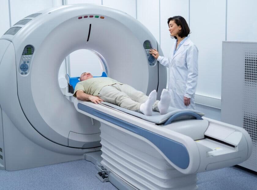 Пациент приходит в отделение лучевой диагностики, снимает все металлические предметы. Ложится на спину на подвижный стол томографа, который будет перемещаться через кольцо (гентри) аппарата. Медсестра устанавливает в вену катетер – через него будет поступать контрастное вещество.