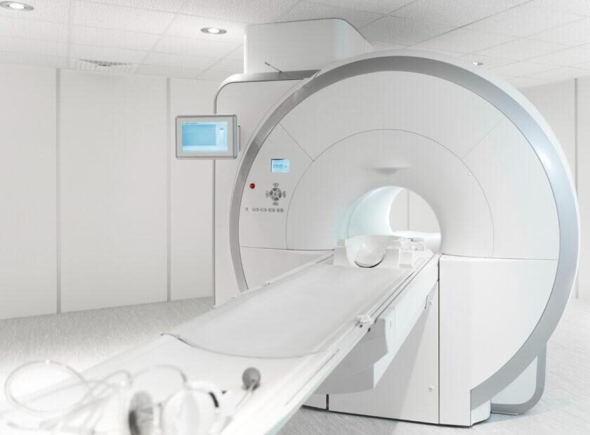 - Исследование без контраста. Аппарат издает достаточно громкие ритмичные звуки (постукивания, щелчки). Чтобы избежать неприятных ощущений пациенту предлагают наушники или беруши. С медперсоналом можно общаться через систему двусторонней связи.