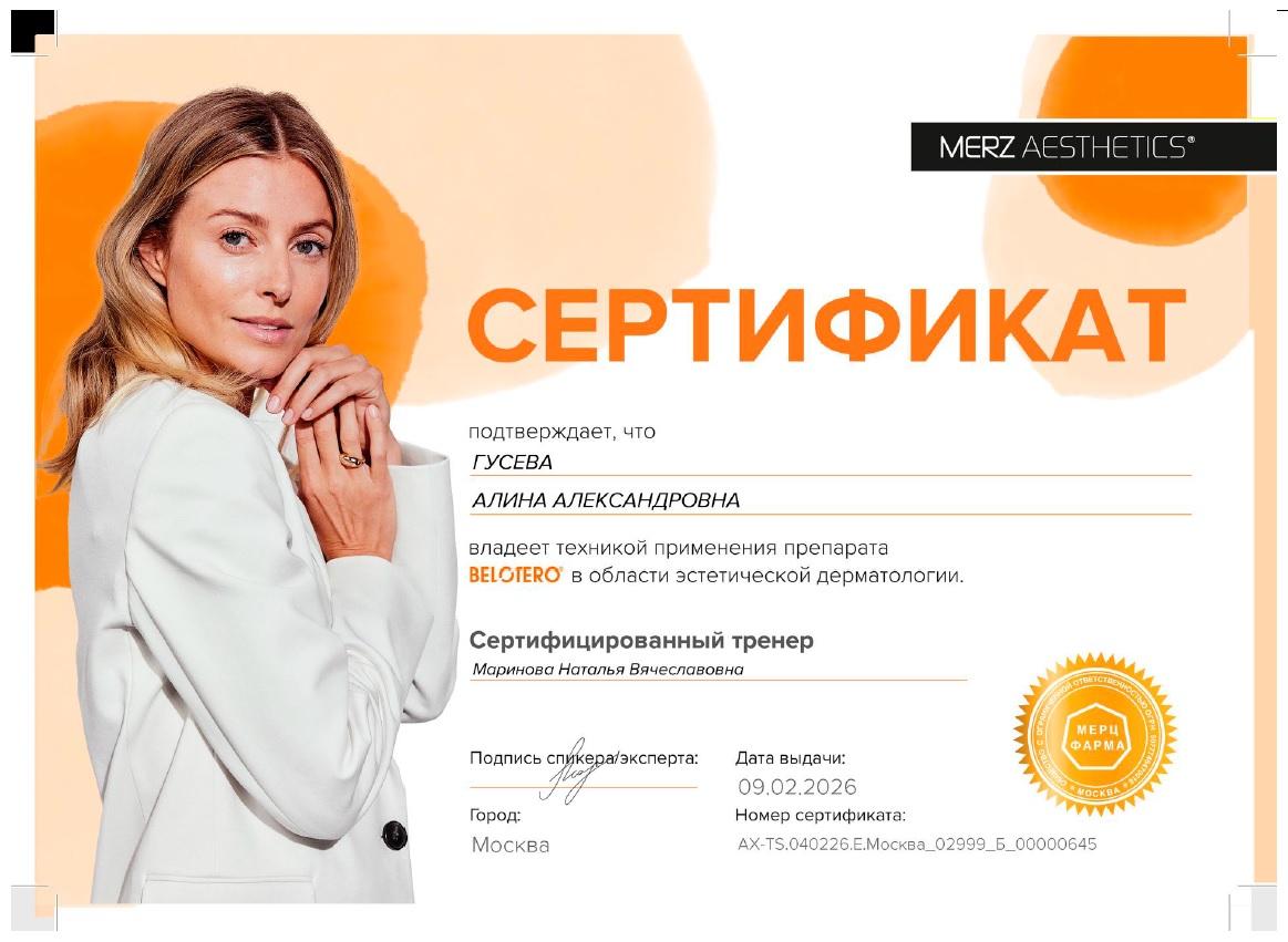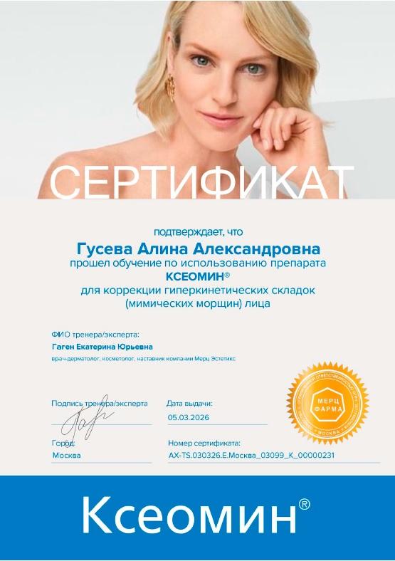 - В 2019 году окончила ординатуру по специальности «Дерматовенерология» на базе Центральной государственной медицинской академии Управления делами Президента РФ. Диплом с отличием.