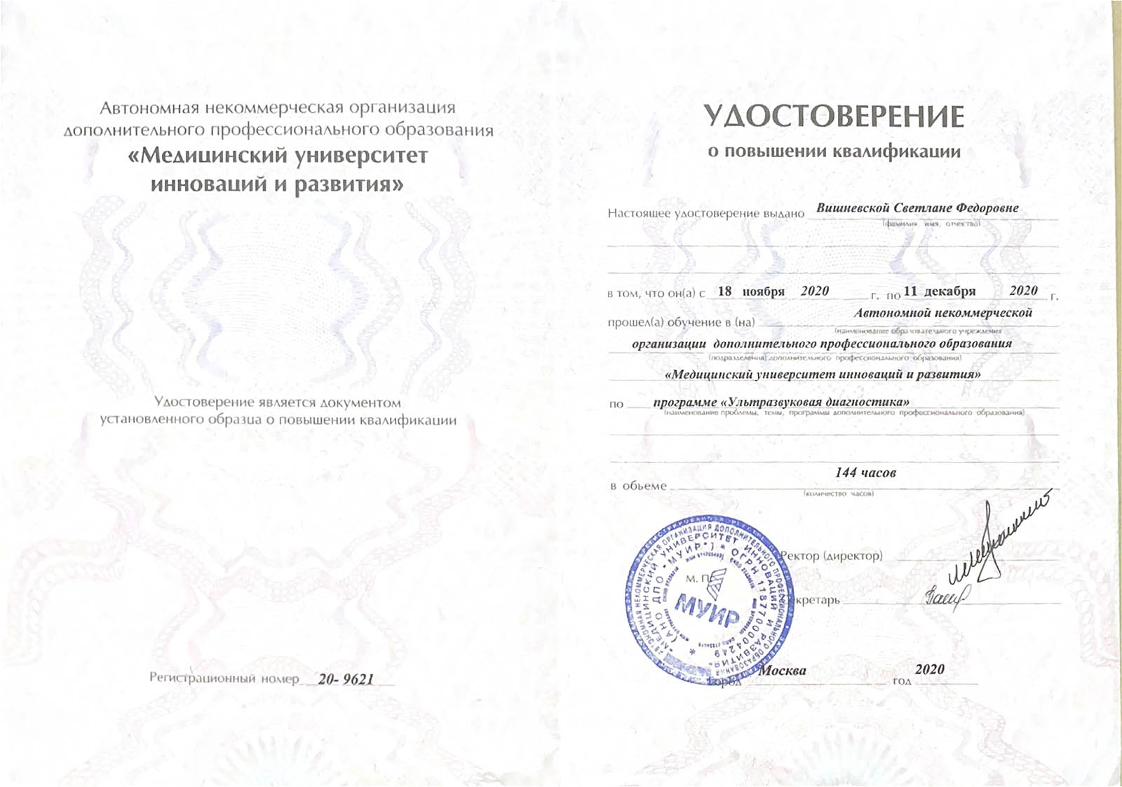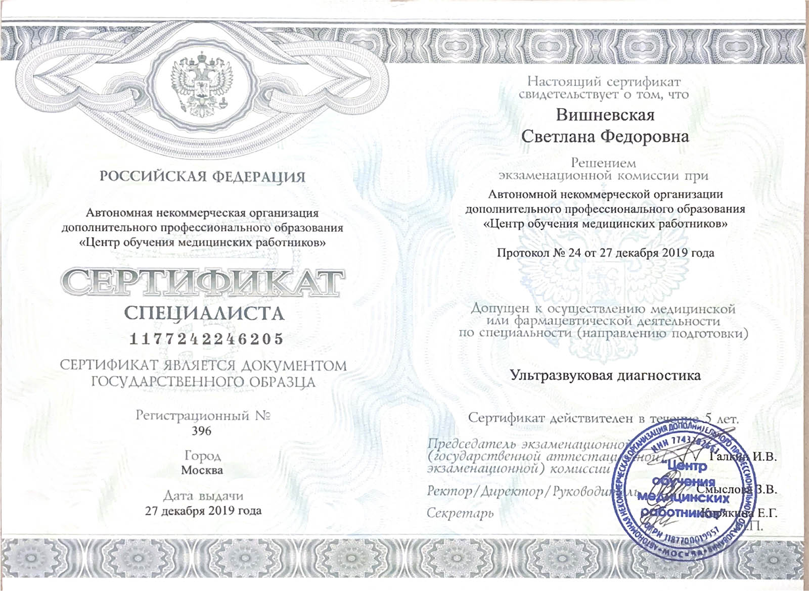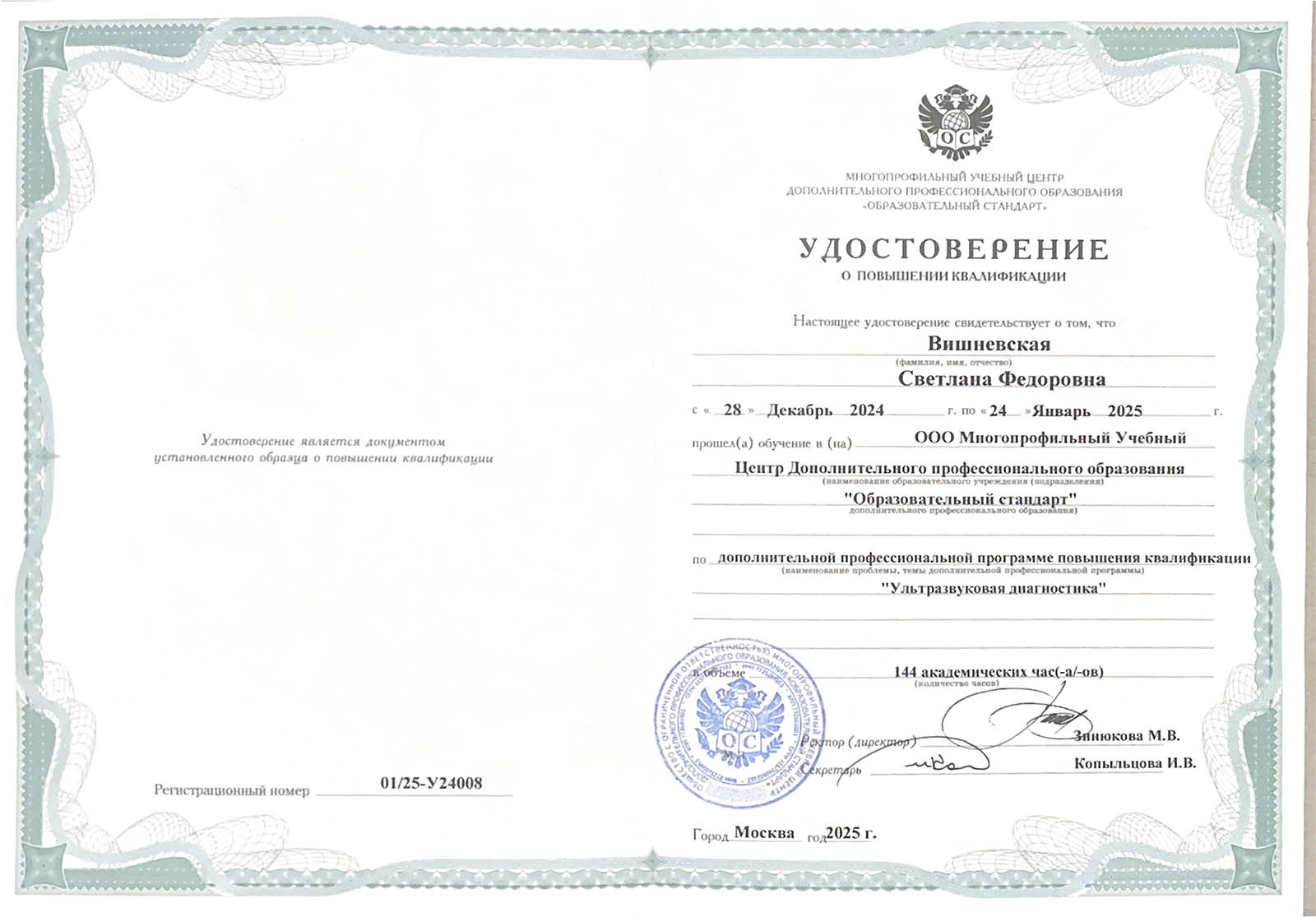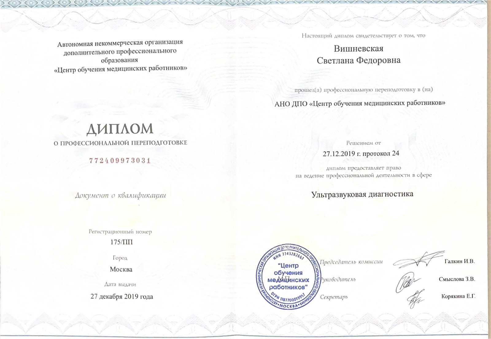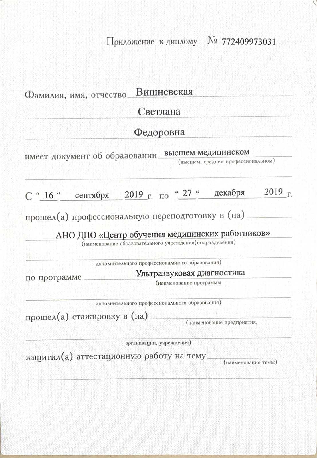 С 2019года по настоящее время – врач ультразвуковой диагностики.